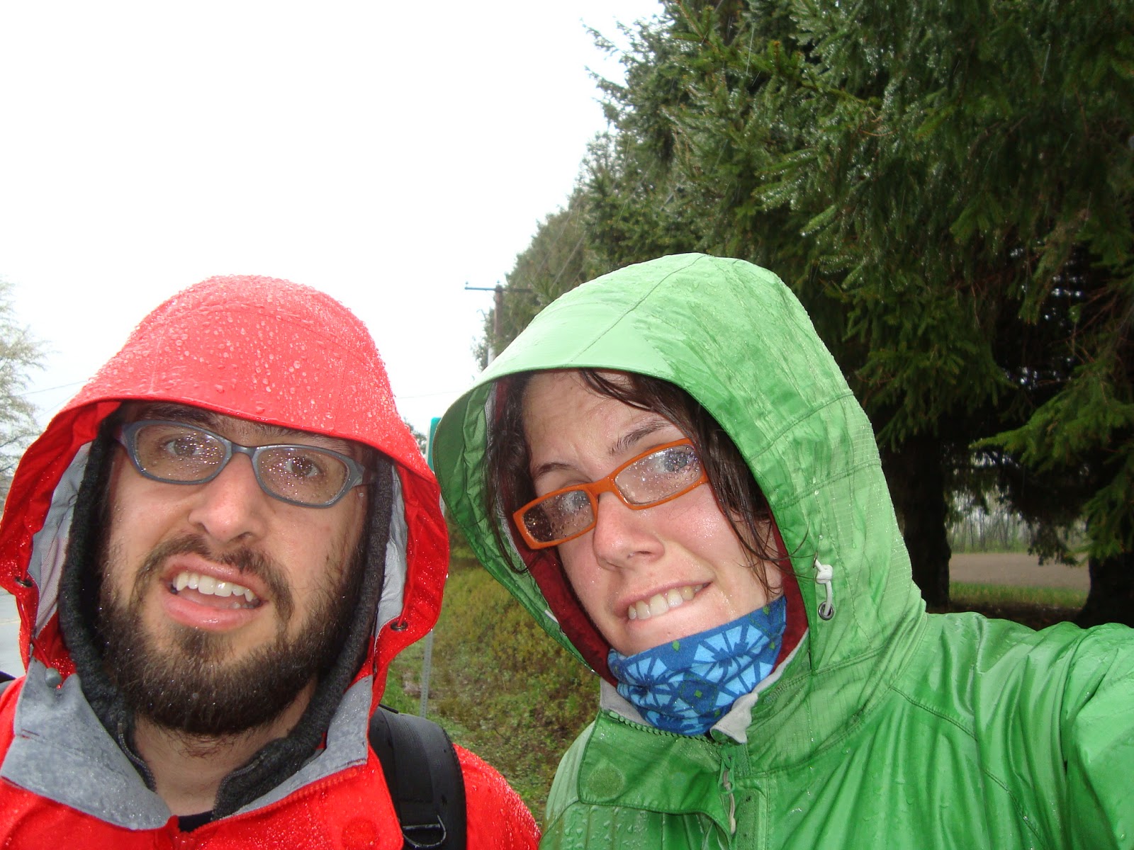 Ça c’était à côté de la pancarte Saint-François 13 km. Déjà trempés.