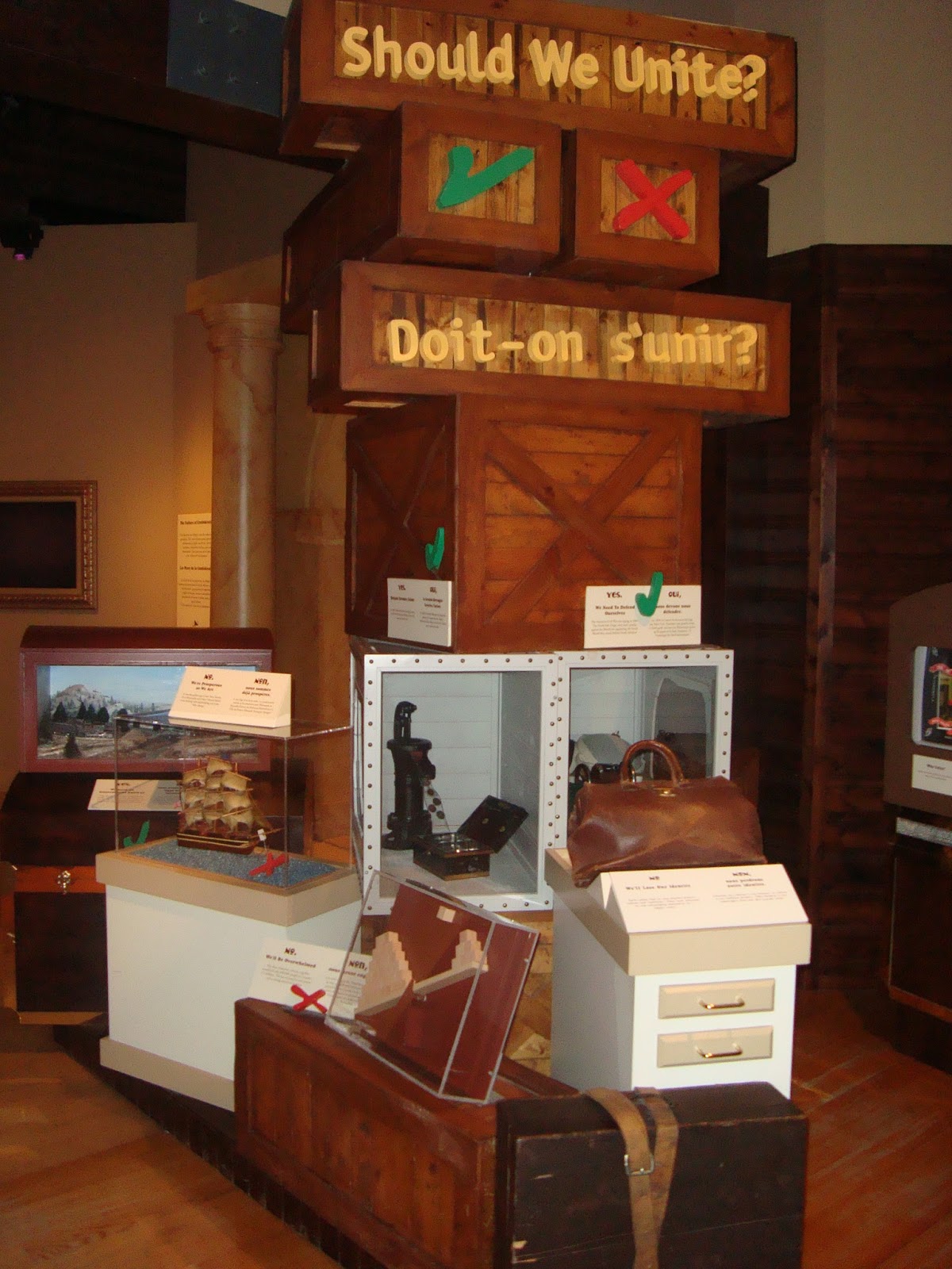 L’Île du Prince-Édouard fait partie du pays depuis 1873, soit 6 ans après la création du Canada et pourtant, dans le centre-ville de Charlottetown, il semble y avoir une fierté d’être la Canada’s birthplace (et ça change de Anne aux pignons verts…). Dans la même bâtisse que l’information touristique, à deux pas du port, il y a le Founder’s Hall, un cours de Confédération 101. Un tunnel nous fait reculer dans le temps, avant 1867, question de comprendre où en était les colonies britanniques. Puis par des faux reportages télévisuels et autres mises en scène simples et efficaces (un drap avec l’ombre d’une femme qui jase de ce qui se passe en ville en accrochant ses vêtements sur la corde à linge m’a particulièrement plu), on nous explique les différentes étapes qui ont mené au 1er juillet 1867. Ensuite, on en apprend sur l’entrée de chaque province et territoires, les pours et les contres de l’adhésion et sur ceux qu’on appelle les pères de la Confédération. Le gros avantage du Founder’s Hall : avoir trouvé le dosage parfait entre l’information écrite et visuelle. Personnellement, vous me perdez rapidement quand je dois lire l’équivalent d’une thèse à chaque arrêt dans un musée, que le sujet m’intéresse ou non. Le sujet trouve bien sûr d’importantes fondation à Charlottetown, là où plusieurs politiciens se sont rencontrés en 1864, quelques semaines avant la deuxième conférence menant à la création du pays, qui a eu lieu à Québec, là où on ne se vante vraiment pas de ce pan de notre histoire. Peu importe les allégeances politiques, la création d’un pays, qu’on l’aime ou le déteste, reste quand même un événement historique majeur, sous-utilisé dans la capitale québécoise. Ce n’est pas de la politique, c’est de l’histoire! Parlant de divorce politique, j‘ai été étonnée d’apprendre que bien avant que les québécois ne discutent de souveraineté, la Nouvelle-Écosse a en fait été la première province canadienne à vouloir se séparer du Canada…en 1868!