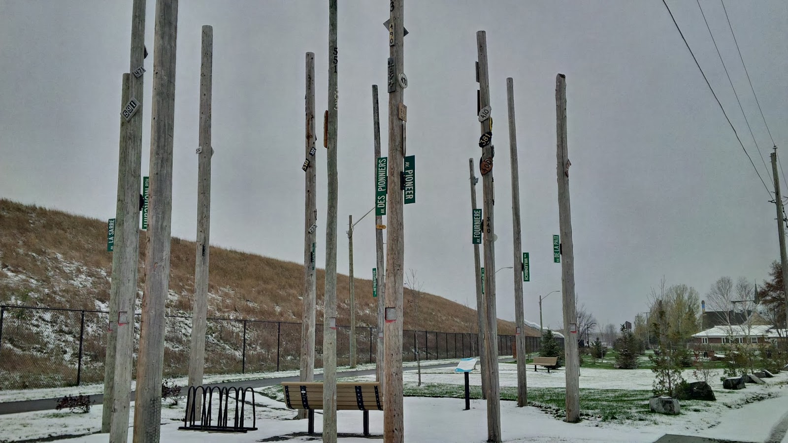 | En se trompant de direction, nous sommes arrivés sur ce « cimetière » de rues et d’adresses qui n’existent plus en raison du projet de la mine Osisko, qui revitalisera sans doute l’économie de Malartic et des environs, tout en laissant un immense trou pour de nombreux citoyens. |