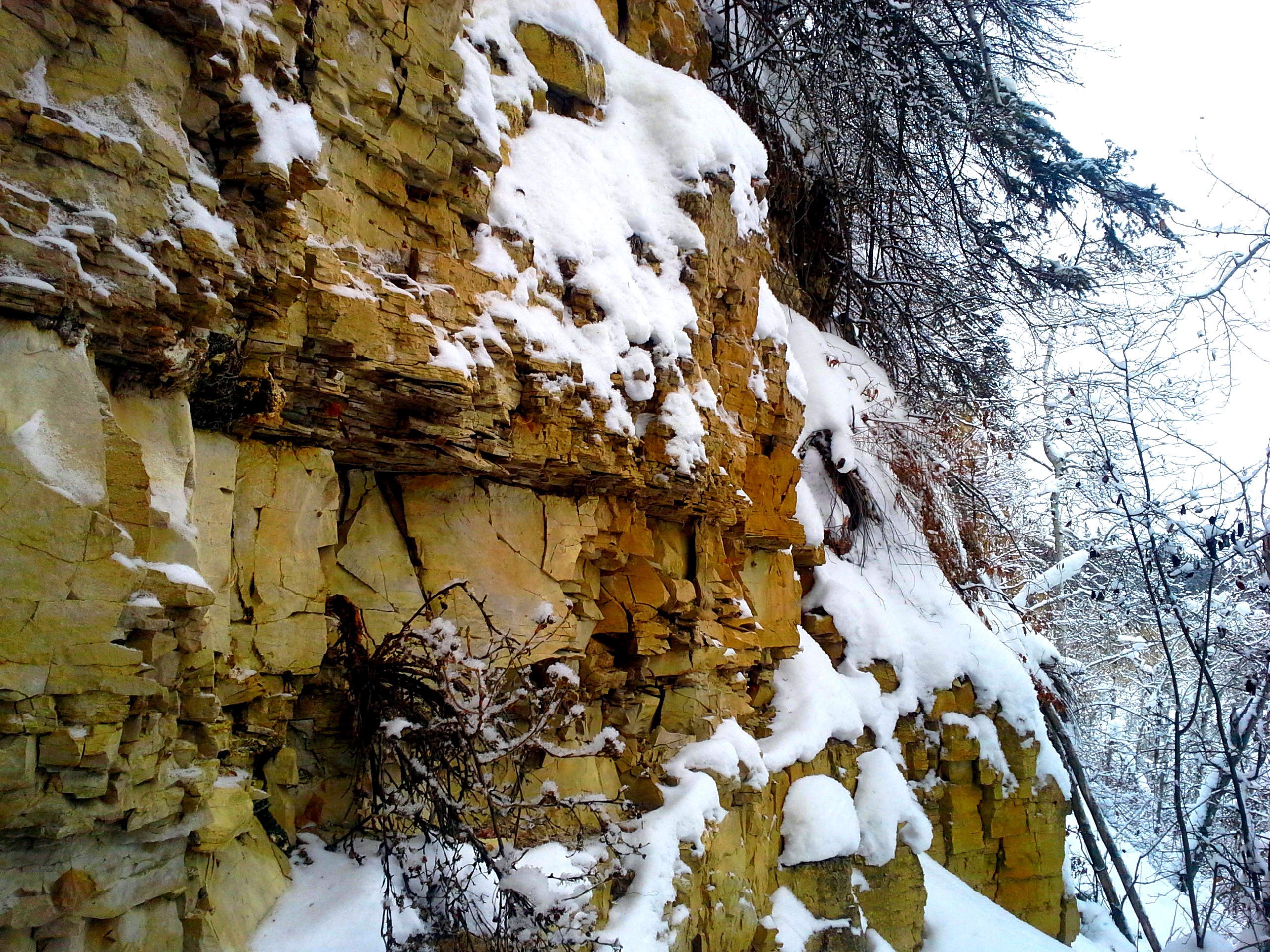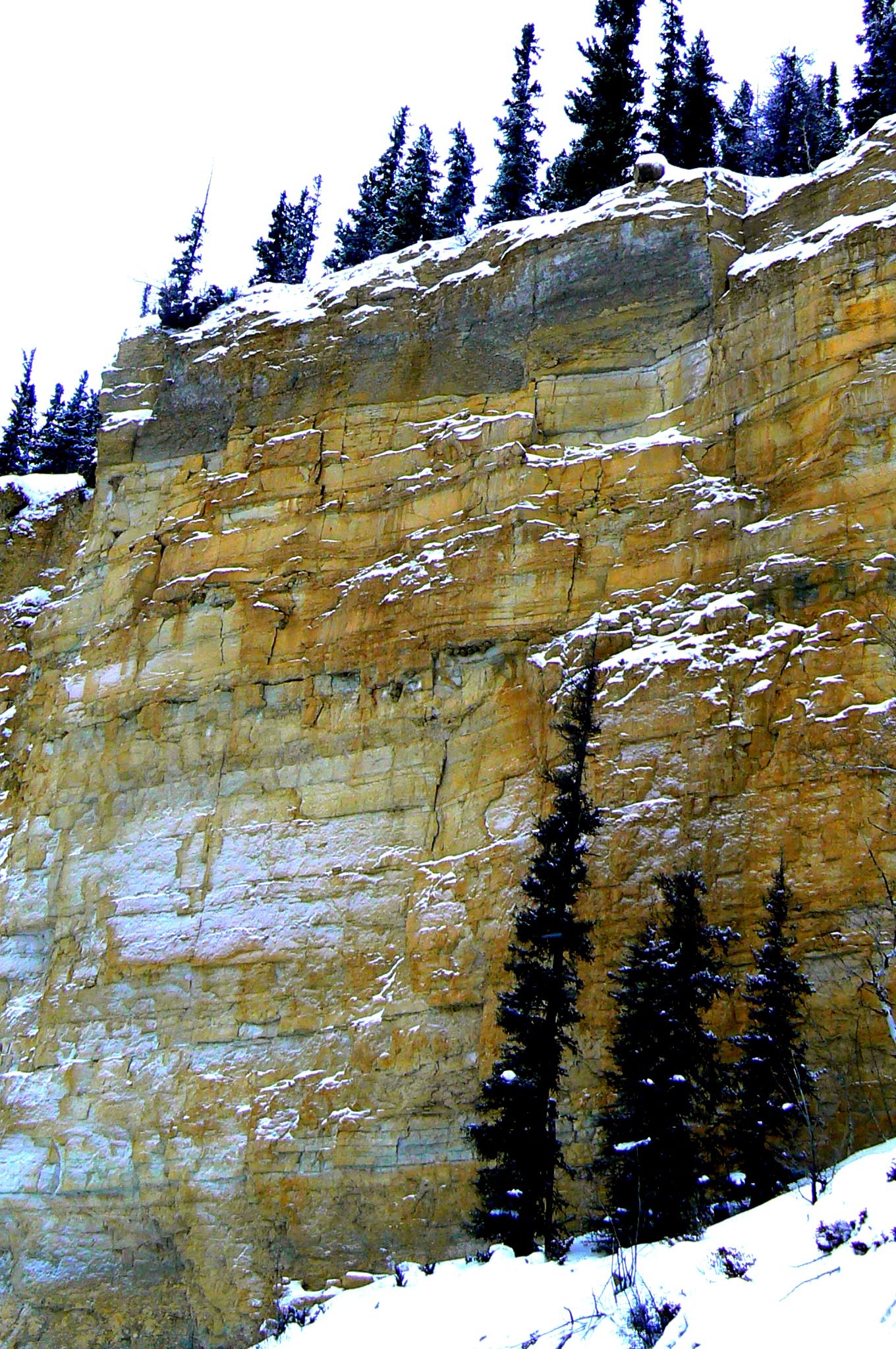 Les deux côtés de la paroi entre le sentier du haut et la rivière.