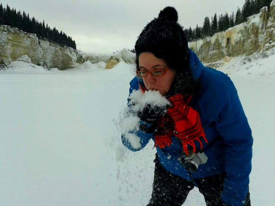 En train de tester la neige des TNO qui n’est pas pareille que celle du Québec!! C’est super sec là-bas.